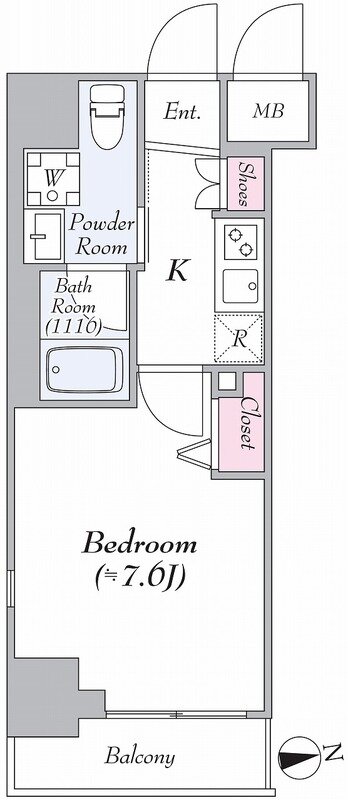 シングル向けの1K住戸を中心に揃え、各住戸、25m²超えで居室にゆとりを持たせた作りになっています。