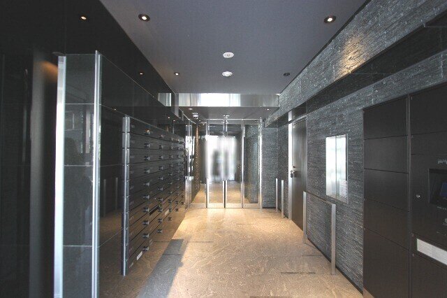 エントランスホールには家を空ける事が多い方のマストアイテム宅配ボックスも備えられています。ダークカラー×ホワイトのボーダーで存在感を放つ外観デザインの高級賃貸マンションです。東中野駅東口より徒歩2分で都心へのアクセス良好です。