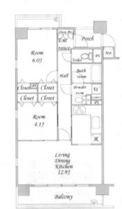 システムキッチン/バス・トイレ別/浴室換気乾燥暖房機/フローリング/エアコン/室内洗濯機置き場/シューズボックス/3口ガスコンロ/バルコニー/温水洗浄便座/独立洗面台/カラーモニター付きインターホン/クローゼット/パウダールーム