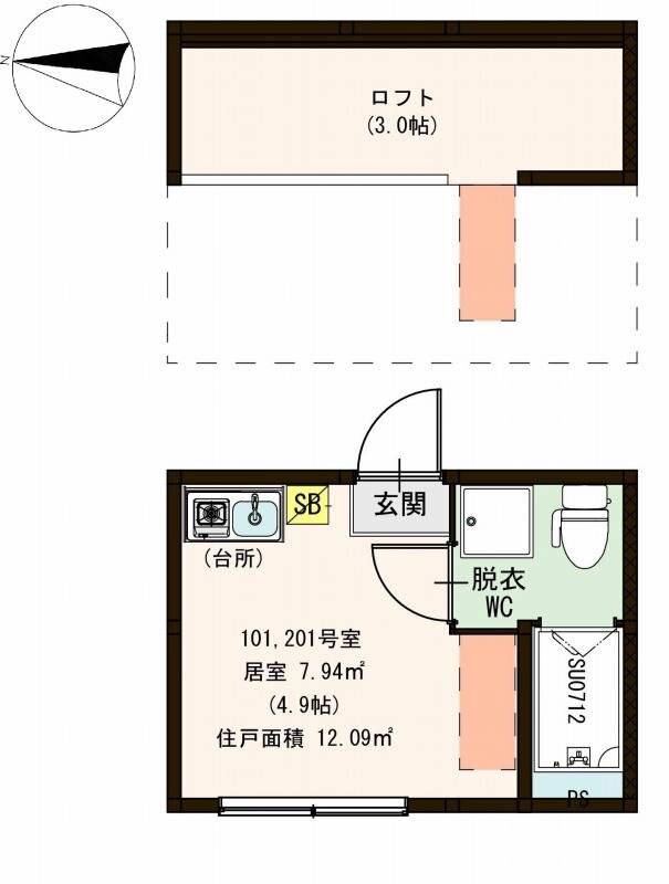 | 間取り・専有面積 | 1R+ロフト / 12.09m²~ |