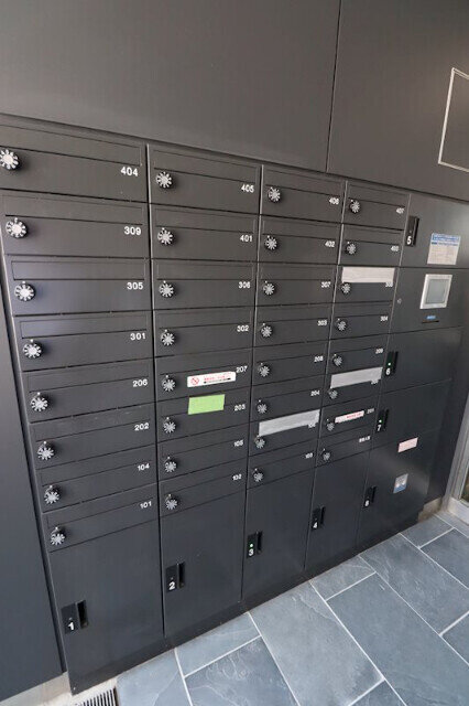 共用部には宅配ボックスがあり、不在時に届いた荷物をスムーズに受け取れるので便利です。
