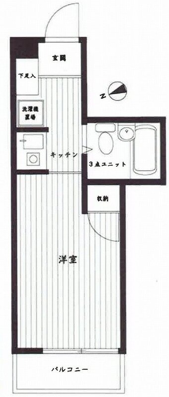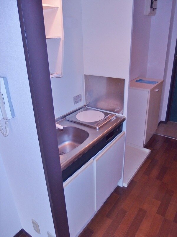 システムキッチン/フローリング/エアコン/室内洗濯機置き場/シューズボックス/1口コンロ/バルコニー/クローゼット